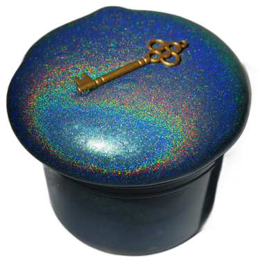 6oz Holo-Pigmented clear slime that comes with a fake key charm!