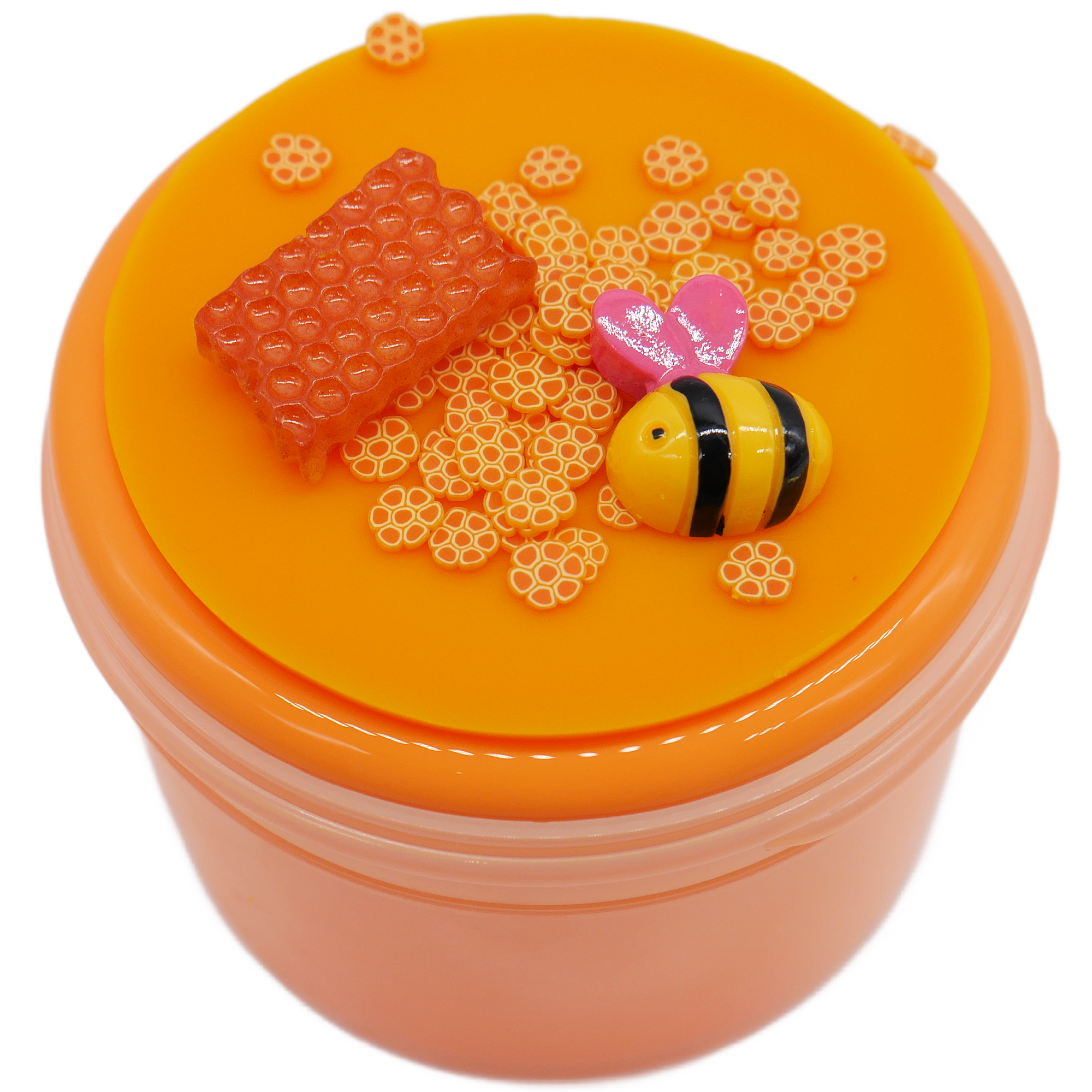 Comes with: 6oz slime, wax topper, bee charm, honeycomb limos and honeycomb charm