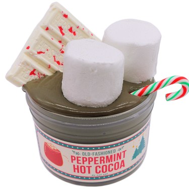 Comes with: 6oz slime base, 2 clay marshmallows, clay peppermint chocolate bar, candy cane charm.