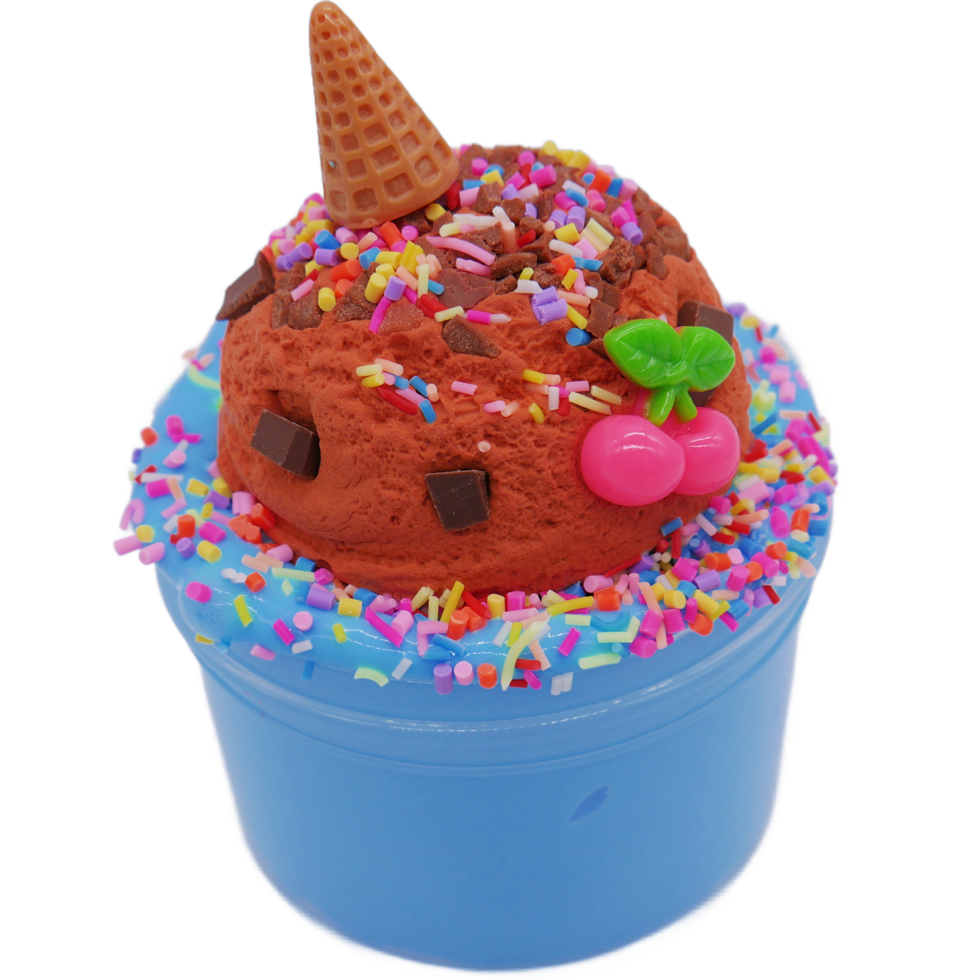 COMES WITH: 6oz slime base, clay scoop, cone charm, cherry charm, + sprinkle toppings