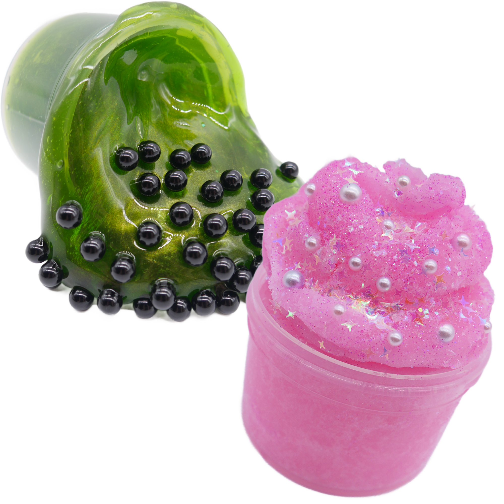 All slime orders come with borax powder, slime care card, and parakeetslimes wristband. Borax powder is used to make slime activator to fix sticky slime. Occasionally we will have promos for free slime, merch, and more giveaways in orders! Check our Slime Care page for more info on how to care for your slime.